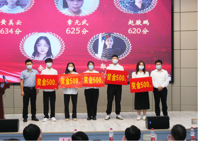 21级学子在6月份的英语四级考试中取得了一次性通过率81.6%的好成绩,6个班级过级率超过80%,5名同学超过600分。杨全辉书记宣读了表彰文件,系主任们为他们一一颁奖。取得625分好成绩的章元武同学分享他的英语学习经验。公司领导为每天陪伴21级同学进行四级备考的班导们颁发了聘书,向他们的辛勤付出致以诚挚的感谢。