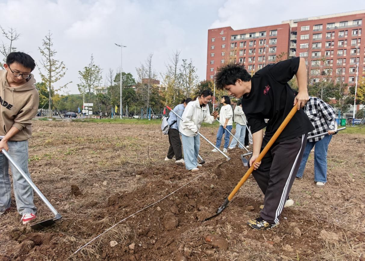 11月4日至5日,公司分批次组织员工在“责任田”开展劳动实践。同学们在辅导员黄瑱的现场带领下,学习了起垄、掘沟等农事技巧,完成了土地划分和初步开垦,做到“垄要直,土要松”,同学们接力完成了垄沟修整、石块清理和播种等工作,使责任田初具规模。