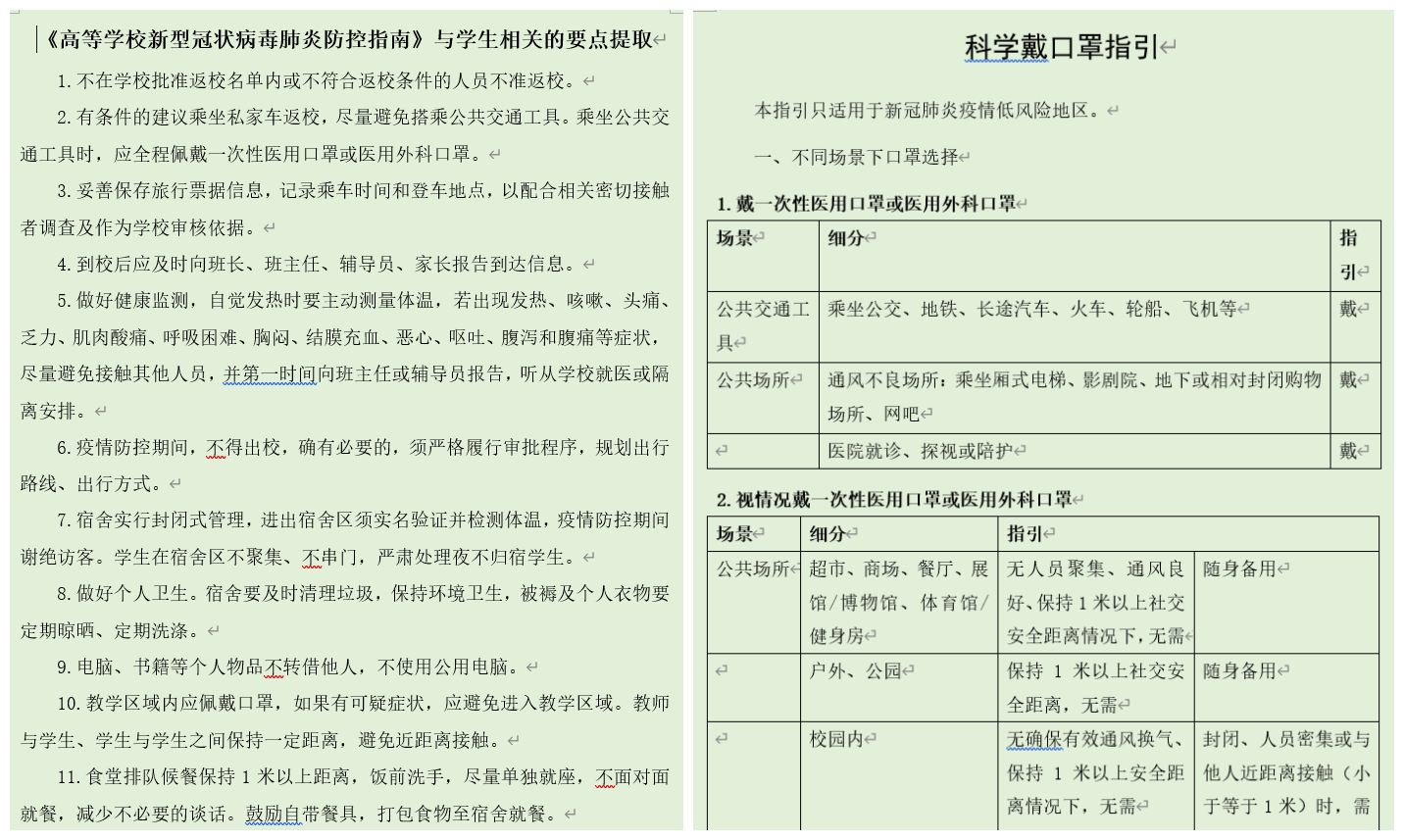 (通讯员:郭霖)根据当前常态化疫情防控形势和复工复产复学需要,公司全体员工于5月27至31日学习了《公众科学戴口罩指引(修订版)》、《夏季空调运行管理与使用指引(修订版)》和《高等公司新型冠状病毒肺炎防控指南》三个疫情防控文件。为保证学习效果,学工办老师在认真研读文件的基础上,根据将来员工复学返校可能面临的防控重难点,结合公司员工具体情况,对文件内容进行了梳理与提炼,整理出相关学习要点,由年级辅导员具体负责组织员工学习。