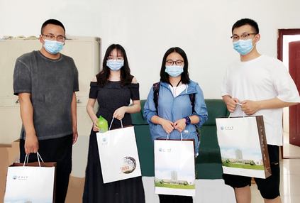 在此次返校的志愿者中,有多次申请的优秀毕业生李胡蝶、有从青海千里之外返校的王建邦、有在疫情中热心参与社区防疫志愿工作的付文俊…为表达问候与谢意,公司在志愿者精心准备了一份防疫大礼包。今天在会议现场统一着文化衫的他们,更显精神抖擞。