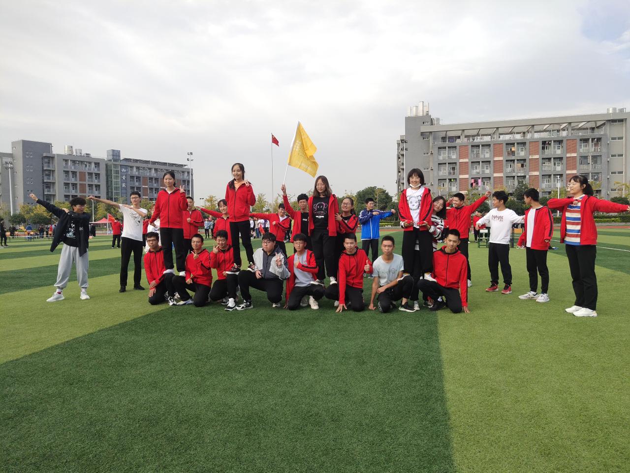 “你们需要制作自己的队旗,想好自己的队歌和口号。”教官们把每一个班级分为两个队伍,并要求他们制作自己的队旗,确定自己的队歌和口号。紧接着,每一个队伍的成员都投身其中,有的制作队旗、有的思考口号、有的搜索队歌。一时间欢声笑语徘徊在操场之上。