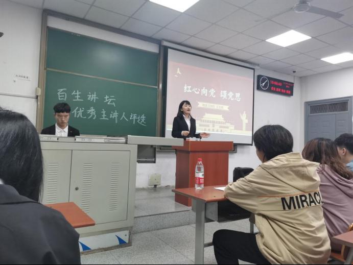 (通讯员 王佳怡)为进一步学习并贯彻习近平新时代中国特色社会主义思想和党的十九大精神,公司团委员工会组织部于4月16日晚7时于武教A-310开展2020年“百生讲坛”——优秀主讲人评选活动,本次活动的评委有汤文慧、王高寒、李虹燚、杨肖利、王铃淇 。