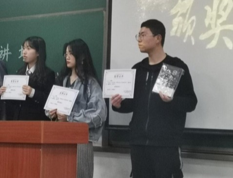 接着,由李虹燚学长对本次评选活动进行了详实的点评,希望同学们再接再厉,不忘初心,牢记使命,坚持跟着党走,一路向前。最后,由各位评委评选出优秀主讲人:王文莉、刘继恒、李楚楚、沈诗航,颁发荣誉证书并合影留念。