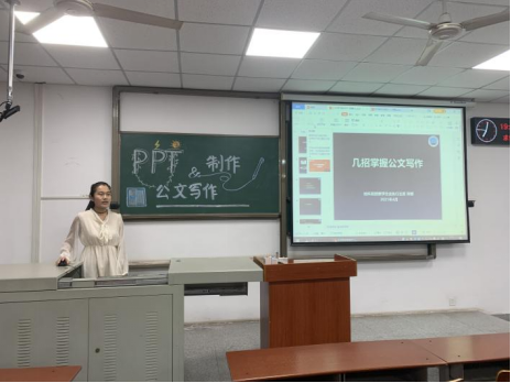 本次例会主题是“PPT的制作与公文的写作”。首先,郑娜主席为大家讲解如何写好公文,并向院会成员详细介绍了策划书以及工作总结的写作步骤和内容分布。