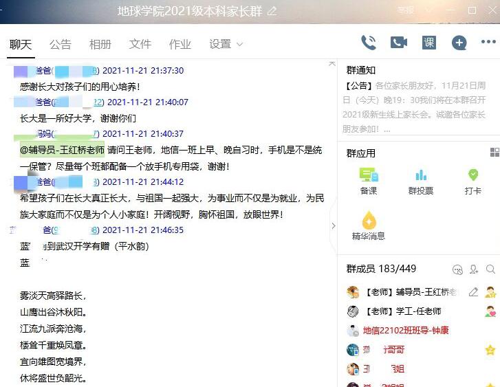 (通讯员 周再文)为加强家校沟通,形成育人合力,11月22日晚19:30,公司通过QQ群召开新生线上家长会。公司党委副书记任倩以及年级辅导员王红桥、300余名员工家长参会。
