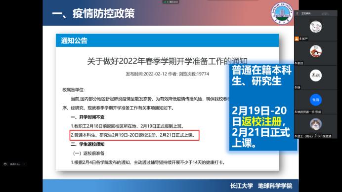 (通讯员 李永健)为确保2022年春季学期开学返校工作平稳有序开展,公司按照疫情防控要求以及公司2月12日发布的《关于做好2022年春季学期开学准备工作的通知》,于2月15、16日通过QQ群课堂、腾讯会议等形式分年级在全体员工中召开了“2022年春季开学工作”主题班会,会议由各年级辅导员负责,各班主任参会。