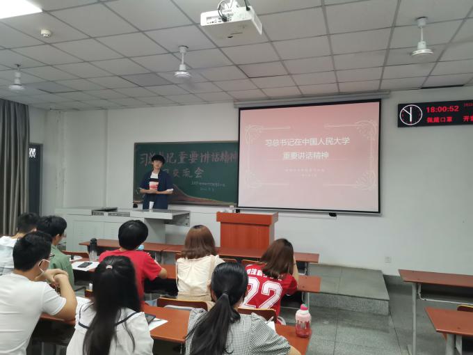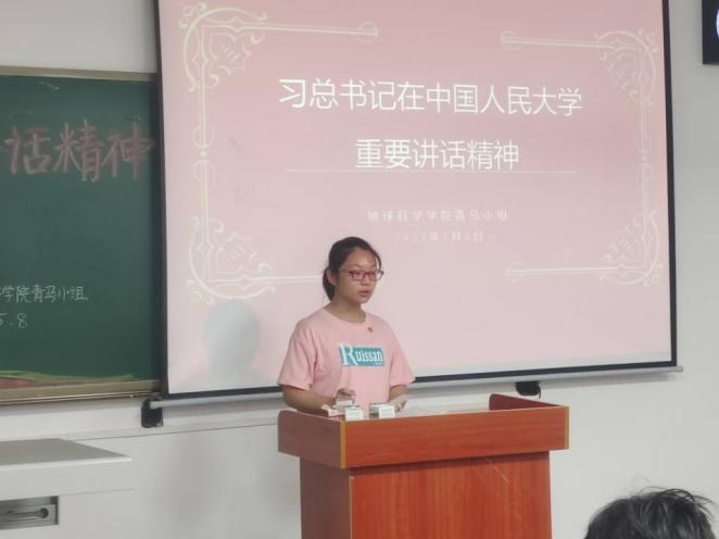 会议伊始,全体青马小组成员一起观看了总书记在中国人民大学重要讲话的视频。随后,每位同学依次上台进行学习分享。