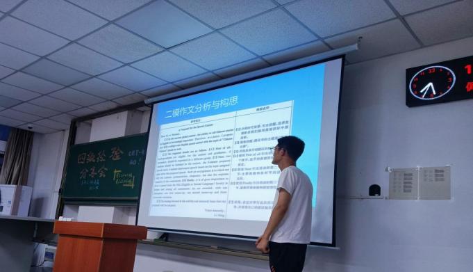 5月4日晚,柯诗嘉作为600分的高分“学霸”,为资工22101班与资工22103班做分享。他首先强调从“态度决定一切”,引导大家充分利用好手头的练习题,充分利用好早自习的时间背单词、练听力,从态度、词汇、方法等方面充分进行备考,以求全面提高。孙仁校学长从考研、就业等方面强调四级考试的重要性,随后,从做题顺序、做题方法等方面分享自己的高分经验。作为两次模考的评卷人,他还结合第二次英语模拟考试的情况,重点从作文构思以及翻译润色两方面提出备考建议。5月5日,李桥、荆怡迈、陈星兆等优秀员工代表,也从自身的考试经历出发,和同学们毫无保留的传授英语学习经验,叮嘱同学们以自身基础为起点,扬长补短,稳扎稳打,进一步提高自己的英语水平,为将来考研夯实基础。