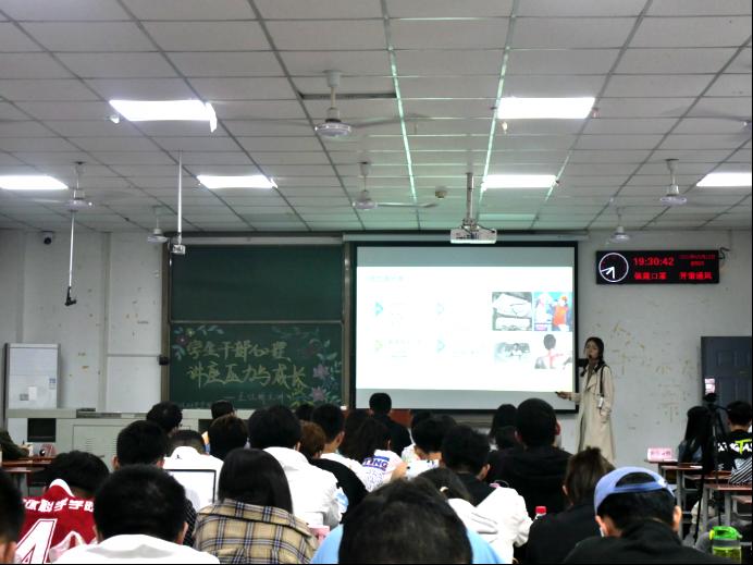 (通讯员:徐子淇 摄影:徐业兴)为更好地培养员工骨干的专业胜任力,5月12日晚7时,公司于武教A-103开展“压力与成长”主题讲座。讲座由公司心理专干王红桥老师主讲,21级108人线下参加,高年级与研究生心理骨干共695人,通过雨课堂、bilibili直播同步线上学习。