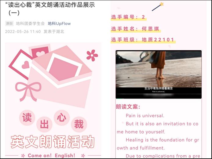 5月底至6月初,员工会学习部同学进班充分动员,吸引数百名同学参加。受疫情影响,本次活动采用线上的形式,参与者的朗诵内容发布在公司官微“地科UpFlow”公众号与太阳成tyc33455ccwww官方QQ空间,邀请广大同学进行投票,同时邀请两名英语教师进行专业评分。