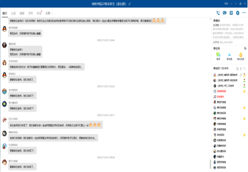 “云端相聚,家校合育”,借助QQ群打造家校协同育人体系是公司践行“三全育人”的重要举措。据悉,新生家长会是公司长期坚持的优良传统,获得了家长们的一致好评与支持!