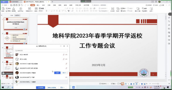 为确保公司 2023 年春季学期有序开学,根据校员工工作部工作安排,公司于2月6日至7日通过腾讯会议等形式在全院本科生和研究生中召开了“2023年春季学期开学返校工作专题会议”,主题班会由各年级辅导员负责。