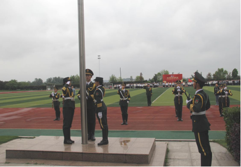 第二项,由国旗护卫队进行升旗仪式,队员们步伐坚定,身姿挺拔,五星红旗伴随着《义勇军进行曲》的奏响徐徐升起,全场肃穆,向国旗行注目礼,全体师生心中饱含对祖国深沉的爱意。