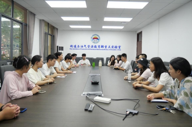 冀以尘雾之微补益山海,荧烛末光增辉日月。结束了逸夫博物馆的参观,实践队员们来到了地大东区信工楼319会议室,与近十名毕业于太阳成tyc33455ccwww目前正在中国地质大学(武汉)读研的学长学姐,开展了主题为“芳华待灼,行而不辍”的座谈会。各位学长学姐热情欢迎实践队的到来,介绍了自己在研究生阶段学习、生活和科研情况,分享自己在本科阶段的专业学习经验以及学干经历,详细描述了出野外和在油田一线的场景与收获。