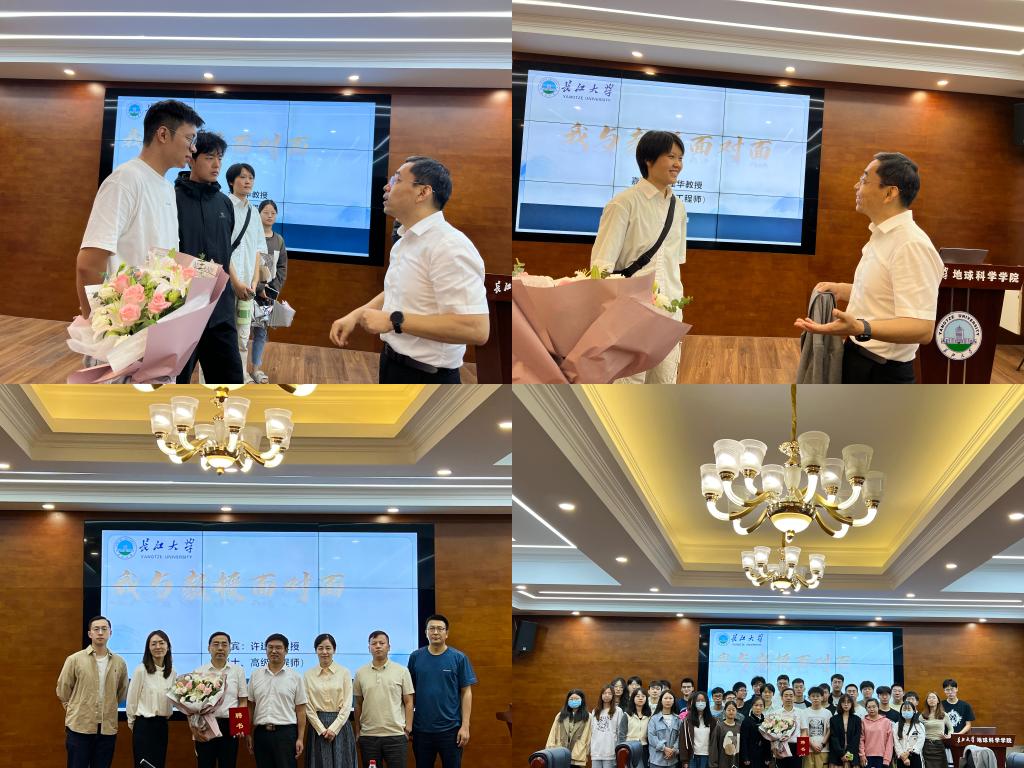 会议第二项,师生面对面交流答疑。2021级本科生刘汉清就报告中的专业知识向教授提问:“断层中的不整合对成藏有哪些作用?”“目前研究热点是什么?”。许教授逐一详细解答,同学们频频点头,现场掌声热烈。2021级研究生韩茂洲对于许老师分享中的软件颇感兴趣,师生就matlab、斯伦贝谢公司的Petrel model等国内外软件的发展差距、优劣势以及迭代情况等内容进行了提问和交流。