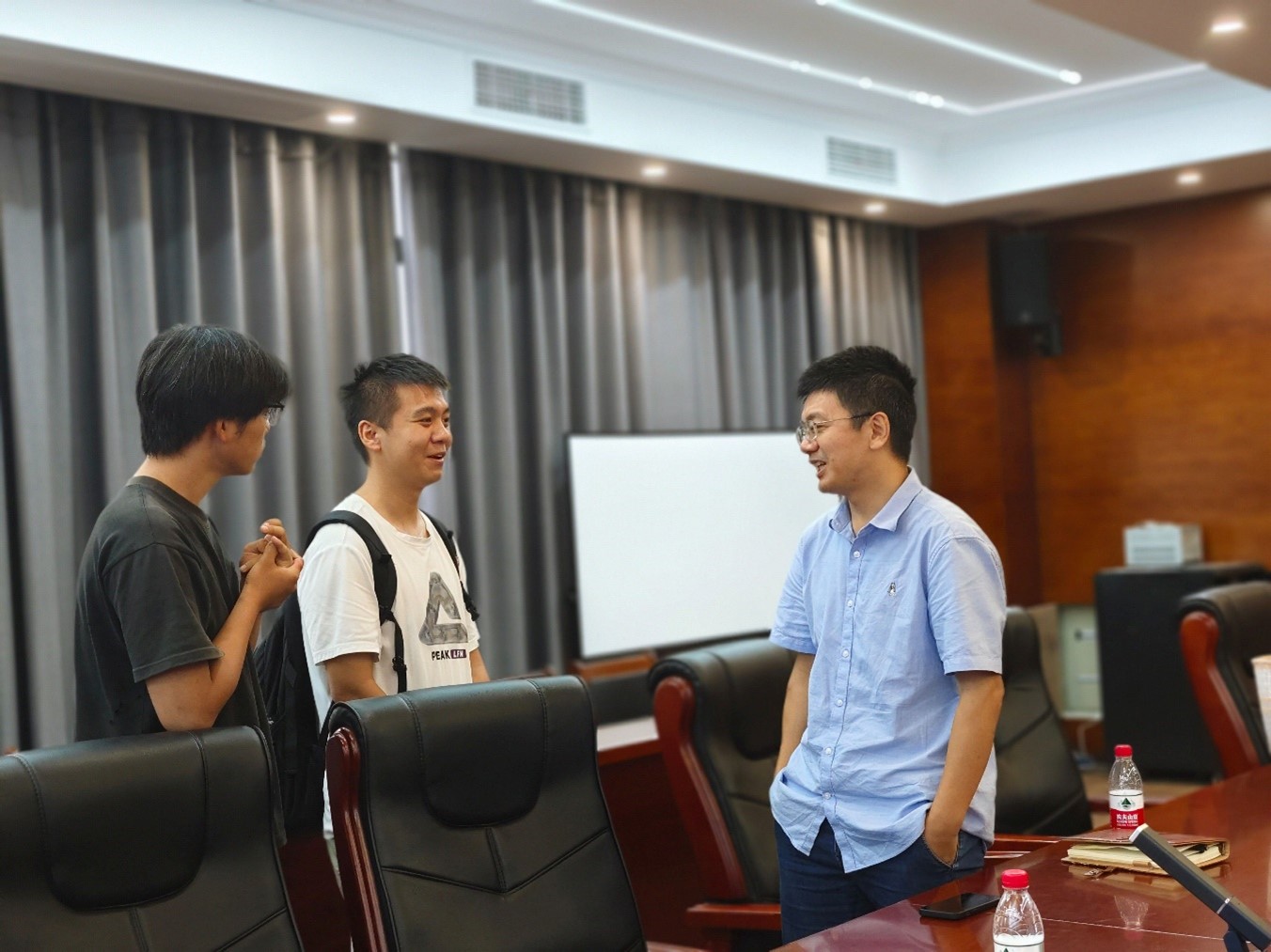 最后,尹教授以申请“名导工作室”的经历,鼓励同学们在学习和生活中保持“凡事无小事”的态度与“跳一跳”的冲劲,自我加压,发挥潜能。王老师在总结中希望同学将本次座谈会的收获应用到生活、备考,进一步明确目标,一战成硕。座谈结束后,仍有同学依依不舍,围在尹教授身旁请教问题。