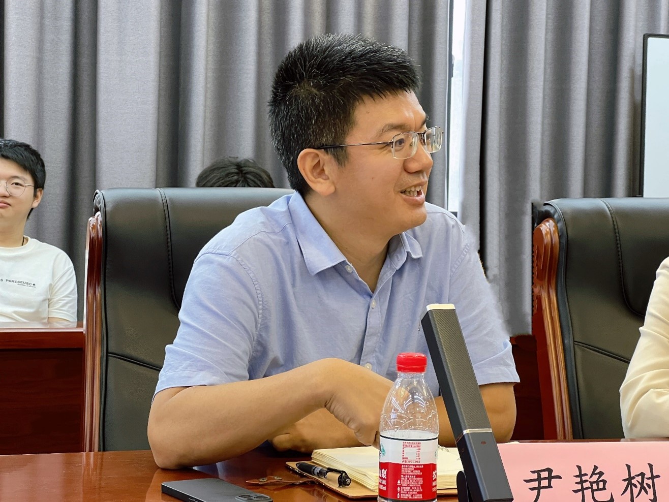 会议伊始,尹教授结合自己的求学、科研经历与同学们进行分享。他回忆道:“入学不久,就因导师制与张昌民教授结缘,走上科研道路,大二起随导师外出考察,研究生阶段继续在张教授团队,做储层随机建模算法方面的研究”。2006年博士毕业后,从辅导员到专任教师,他与同学们建立了浓厚的感情,所培养的很多员工在国内外高校继续深造,成为业界精英。