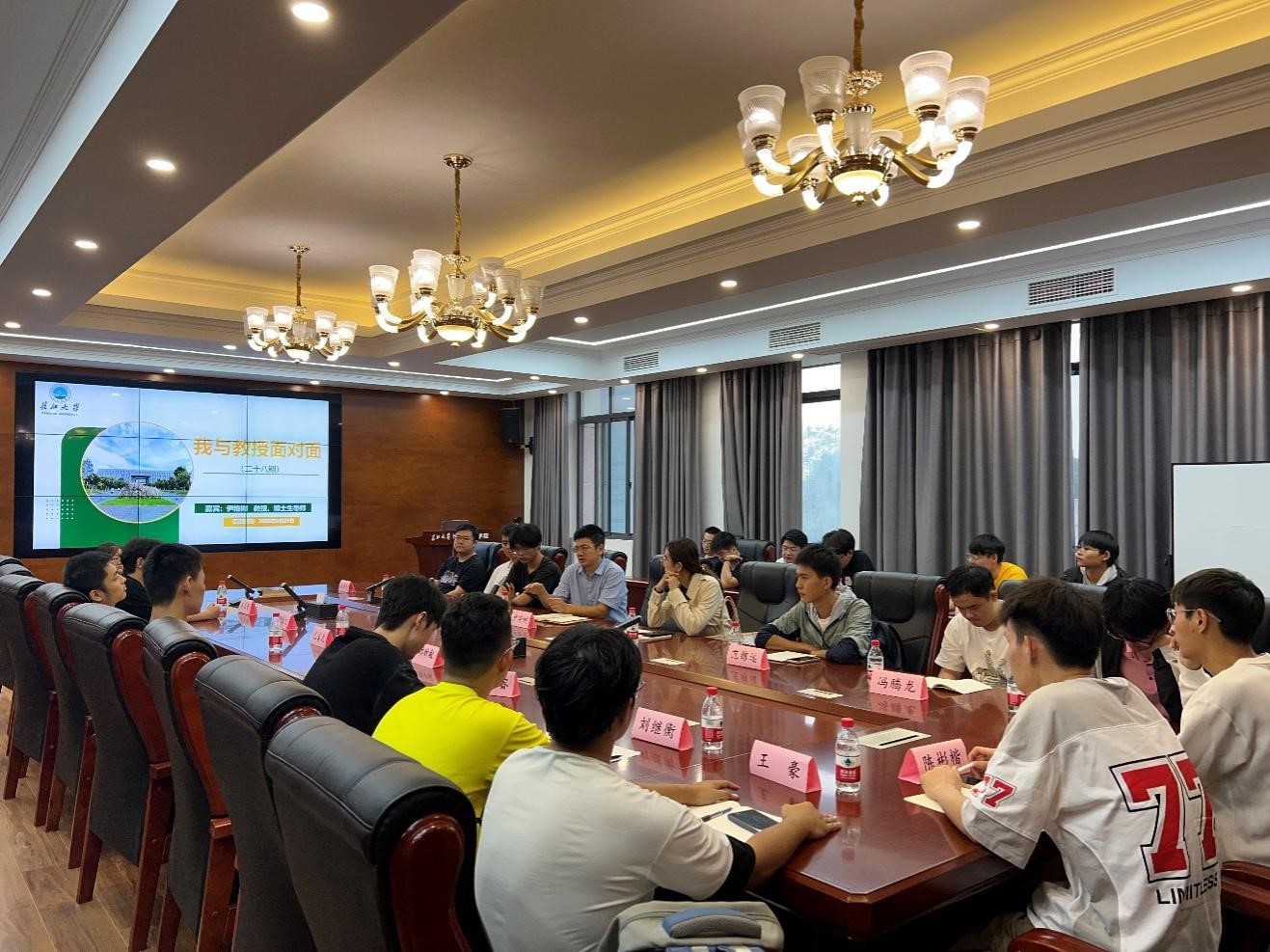 在随后的交流环节,同学们踊跃提问,例如“如何选择适合自己的导师”、“导师更看重员工的情商还是智商”、“选择的研究方向不适合自己怎么办”、“做项目和科研之间如何把握”等。尹教授以多年的教学、科研经验,深入浅出地逐一解答,他通过身边人、身边事举例,他所强调的“做一个生活中、科研上的有心人”、“把毕业设计作为科研的起点”、“在项目中锻炼,解决真问题、锻炼真本领”、“研究生阶段积极沟通、主动探索,把学到的方法用于交叉领域”,让在场同学们纷纷表示受益匪浅。他在分享中引入的“深时数字地球国际大科学计划”、“油田数字化发展”等前沿趋势,也让同学们对专业热点有了更多的了解。