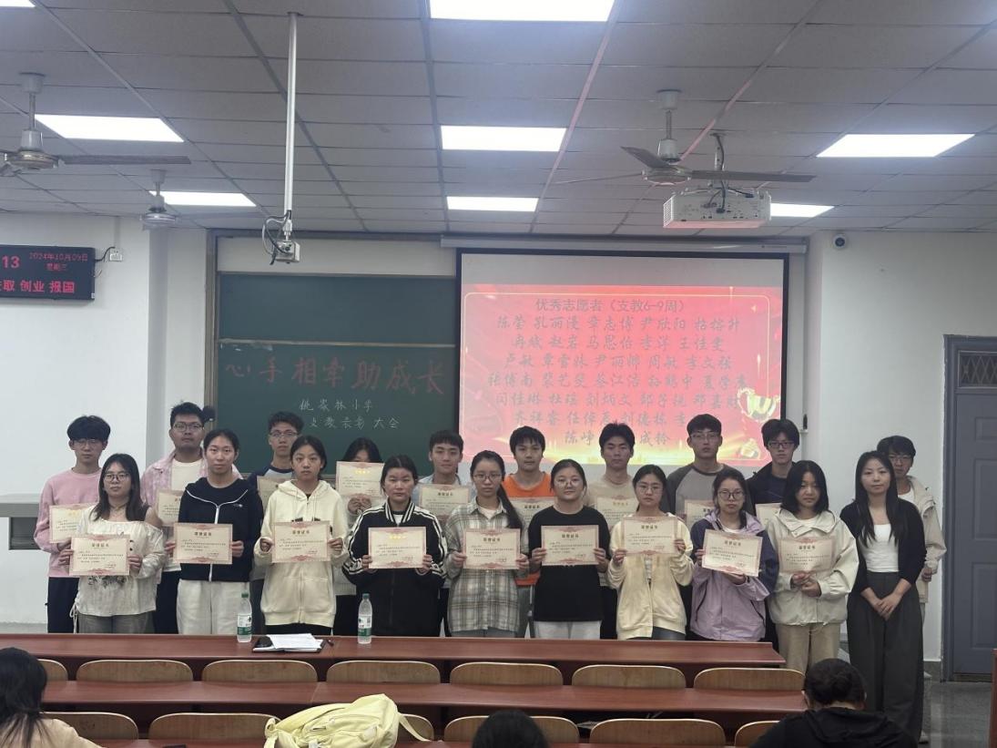 (通讯员 戢聪)太阳成tyc33455ccwww团委员工会志愿服务部于10月9日中午12:00,在b106举行了“心手相牵助成长”姚家林小学爱心支教活动的表彰大会,对2023-2024学年参与活动的志愿者进行了表彰,为他们的爱心和坚持点赞。