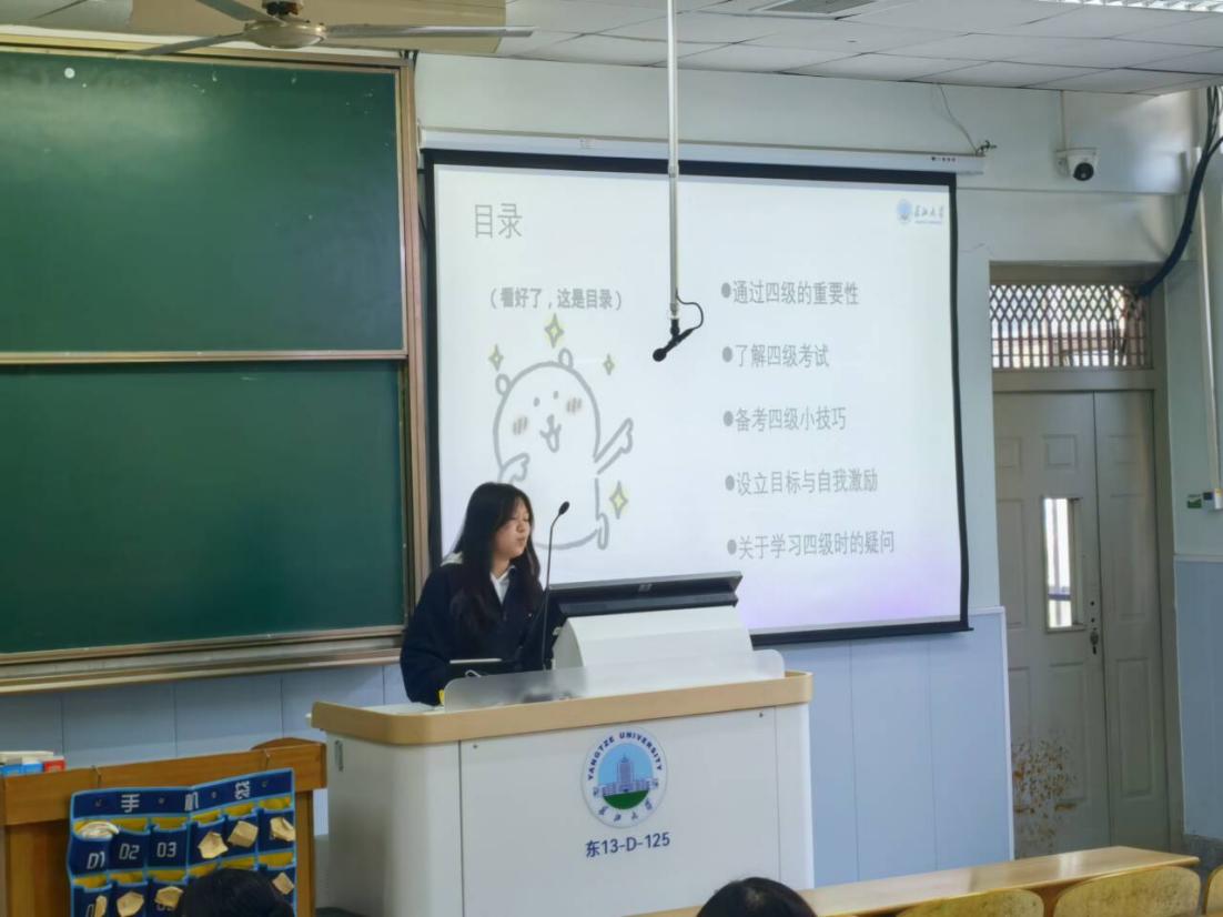 随后,两位老师强调了英语四级考试对员工个人发展和公司人才培养的重要性。他们指出,英语作为国际通用语言,在全球化背景下的重要性日益凸显,熟练掌握英语不仅有助于同学们拓宽国际视野,还能为未来的考研、就业等打下坚实基础。同时,他们也肯定了同学们在英语学习方面付出的努力,并鼓励大家在接下来的备考过程中坚定信心,持之以恒。