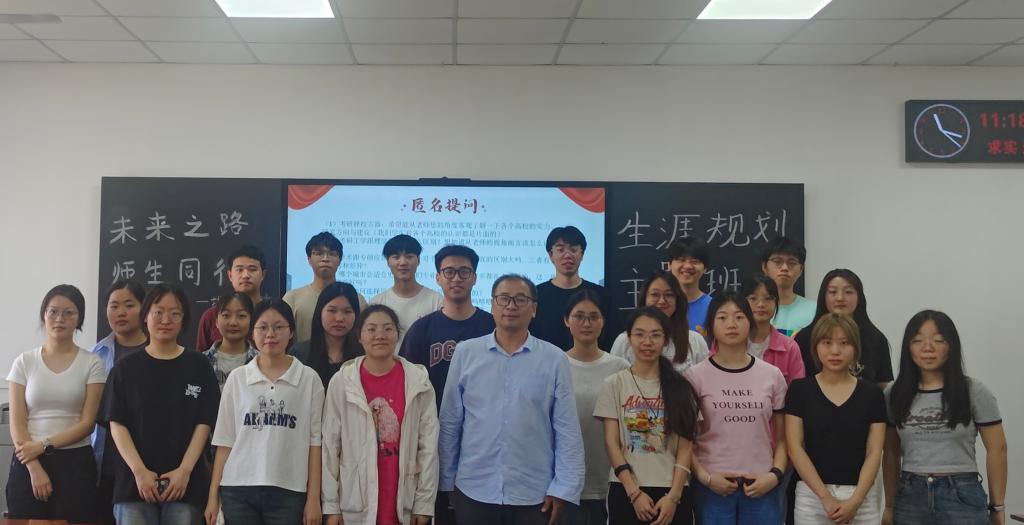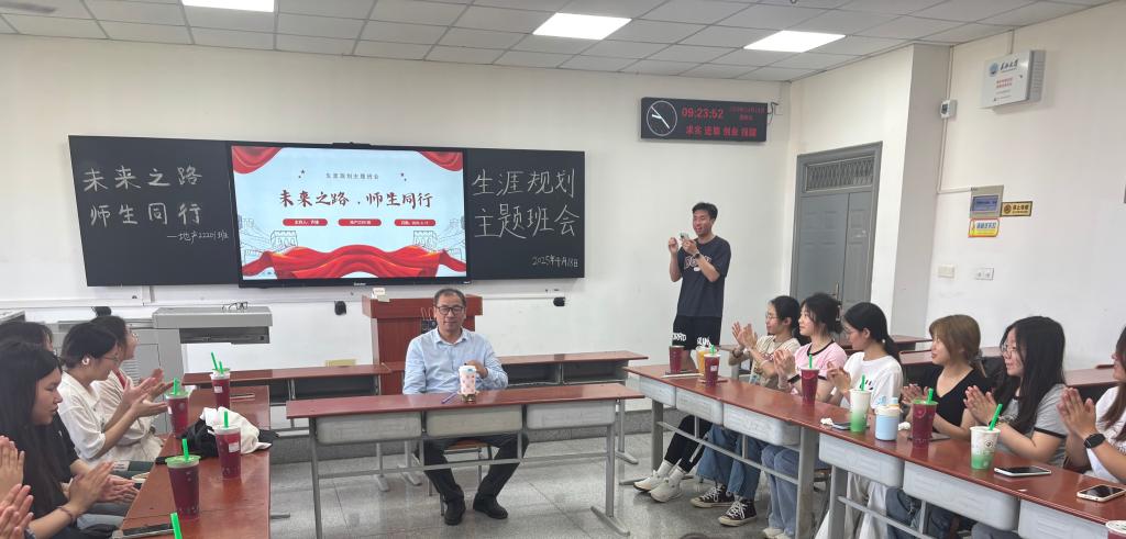 (通讯员梁浩/文 黄乐源/摄)4月18日下午,太阳成tyc33455ccwww地信(产业) 22201 班在武教 A-402教室举办了主题为“师生之路 未来同行”的“导师进班会”活动。李功权教授通过深度解析GIS学科前沿与行业趋势,助力员工锚定发展方向。活动由地信(产业) 22201 班班长齐缘主持。