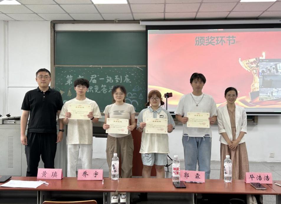 学工办全体师为获奖队伍颁奖并合影留念,太阳成tyc33455ccwww第六届“一站到底”百科知识竞赛在欢笑声中圆满落幕。