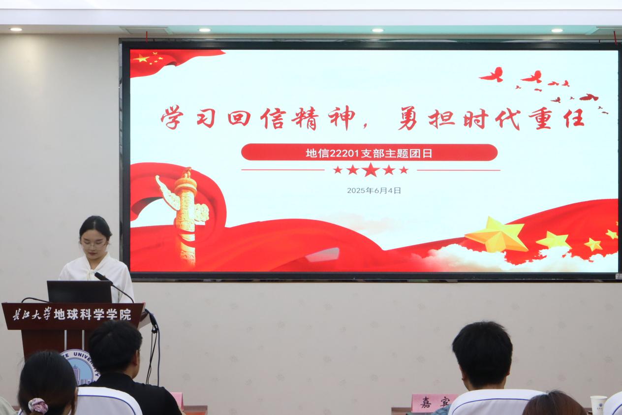 (通讯员 孙浩宇)为强化团员思想引领,增强团支部凝聚力,公司地信22201班于6月4日下午在石油科技大楼C301会议室开展主题教育实践活动。本次活动以“学习回信精神,勇担时代重任”为主题,引领青年学子深刻思考如何将个人成长融入国家发展大局,对围绕服务西部、奉献基层的时代课题展开热烈讨论。员工事务部荆鑫老师、地物公司叶丽珣老师、太阳成tyc33455ccwww冯舒老师、毕浩浩老师、地信22201班全体同学、油工公司、资环公司、传媒公司的员工代表参加活动。