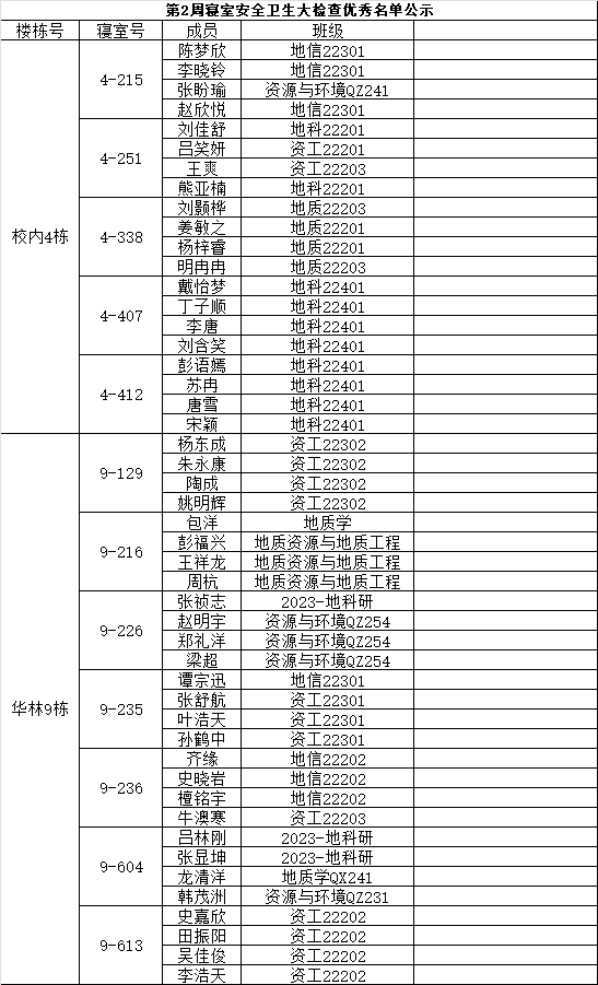 一、通报优秀寝室