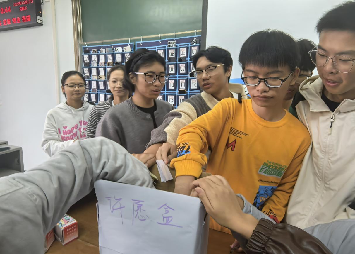 随后,各班级分批开展了“你的愿望我实现”主题活动,同学们将自己的小心愿写入纸条、投入“许愿箱”,并随机抽取成为彼此的“愿望守护者”,在接下来的一学期,努力帮助彼此达成心愿。活动在轻松氛围中促进了同窗情谊,也让温暖与关怀在班级中流动。在“放飞梦想,扬帆起航”环节,同学们认真写下对老员工活的展望与规划,将彩纸折成纸飞机。随着一片欢呼,五彩的纸飞机齐飞向空中,象征着同学们正式启航,一路顺风。