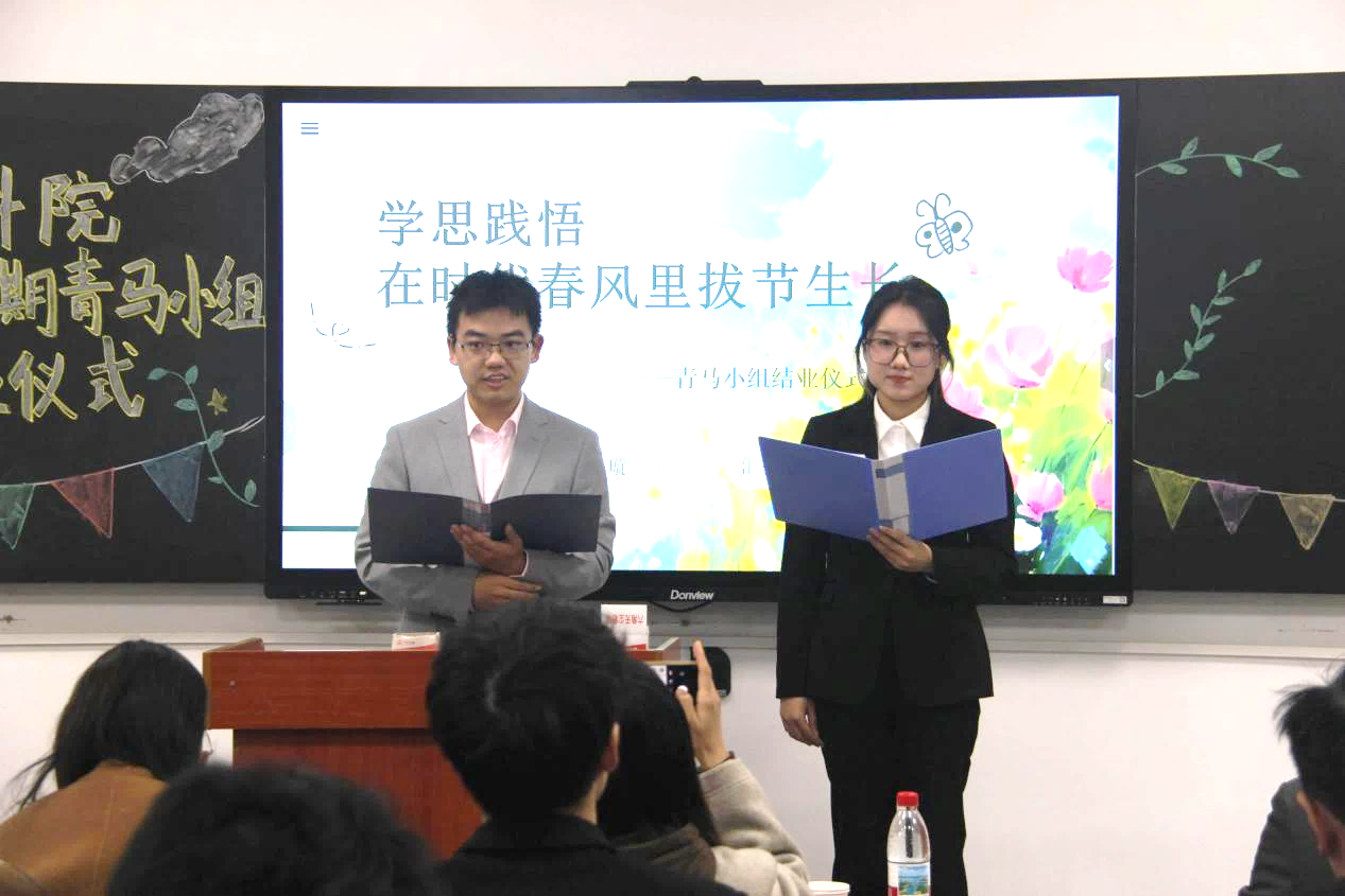 (通讯员 袁野 党宇烁)12月18日中午,公司第五期“青岚”青马小组结业答辩在A教101如期举行。学工办王红桥、郭霖、毕浩浩、乔宇四位老师与全体青马学员齐聚一堂,共同见证青春成长的蜕变时刻。 随着主持人简短开场致辞,结业展示正式拉开帷幕。“青岚”一组的王梓璇在答辩中表现亮眼,其优异的成绩和突出的竞赛成果生动诠释了青马学员“勤学笃行”的青春模样。同组的王彩蓓以“学业深耕、实干担当、思想铸魂”为核心,分享了作为团支书、学工助理深耕员工服务的经历,以及参与“青鸟计划”获评优秀实习老员工的实践感悟,尽显新时代青马学员“知行合一”的青春风采。 “青岚”二组的学员同样交出了亮眼的答卷。张铭涵在答辩中以“思想有信仰、学习有进步、能力有提升”为主线,展现了过硬的综合素质。她深耕红色理论,积极参与社会实践,并投身120余小时的志愿服务,生动诠释了新时代青年“以青春赴家国”的责任担当。同组的郭嘉栋作为24级首批入党积极分子,凭借14149分学习强国积分、红色实践成果3次获官方展示、95.62小时公益服务、思政课程全90+的表现,尽显青马学员“学思践悟、实干担当”风采。 点评环节中,毕浩浩老师赞扬学员们将理论学习融入实践、服务社会,做到了“在学中干、在干中学”。同时,也围绕内容深化等方面提出针对性建议,鼓励学员们以结业为新起点,努力奋斗、勇攀高峰。随后,四位老师为学员们颁发结业证书,鲜红的证书承载着公司的认可与期许,也见证着每一位学员的成长与进步。活动最后,全体师生共同合影留念,为本次青马学习之旅画上圆满句号。 此次结业答辩既是青马工程培养成效的集中检验,更是青年理想信念的生动展现。未来,公司青马学员将继续以青春之我、奋斗之我,在理论学习中坚定信仰,在实践磨砺中增长才干,在服务社会中勇担使命,以实际行动诠释新时代青年的责任与担当。 (审核 冯舒 编辑 毕浩浩)
